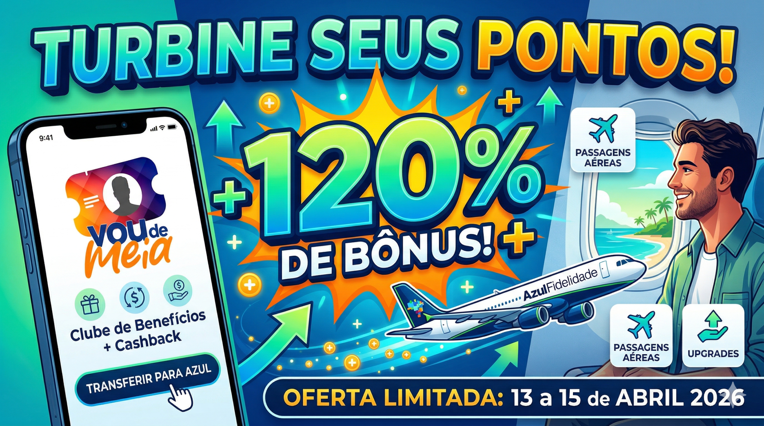 Transfira Pontos para Azul e Ganhe até 120% de Bônus